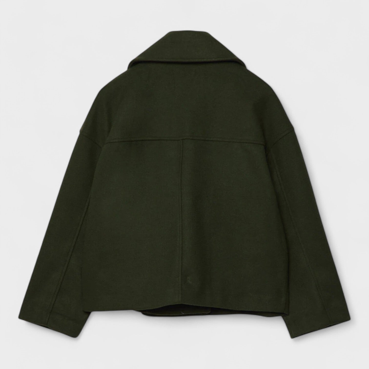 Con un diseño moderno y estructurado, este abrigo corto con abotonado doble es el toque final ideal para un look sofisticado y urbano. Su silueta amplia y cuello marcado confieren elegancia sin esfuerzo, mientras que el tejido grueso garantiza comodidad e impacto. Perfecto para combinar con jeans, faldas o prendas de sastrería, adaptándose a diferentes estilos y estaciones.